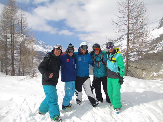On March 15th we did a hike up to the Top of 'Mickey's Ears', which is a Satellite dish at the top of one of the mountains (it's called Mickey's ears because the two dishes look like Mickey Mouse's ears). After the 20/30 minute hike we skied down the back face through a couloir in some pretty good powder before it opened up to a wide powder field. The ski lasted just over an hour down to the big lake at the bottom of the valley between Tignes and Val d'Isere, over 1000m vertical decent. When we got to the lake our guide arranged a Heli Pick-Up to take us back into Val d'Isere rather than the 3 our hike it would have been otherwise. The skiing was amazing but having never been in a helicopter before that's probably what I enjoyed the most!